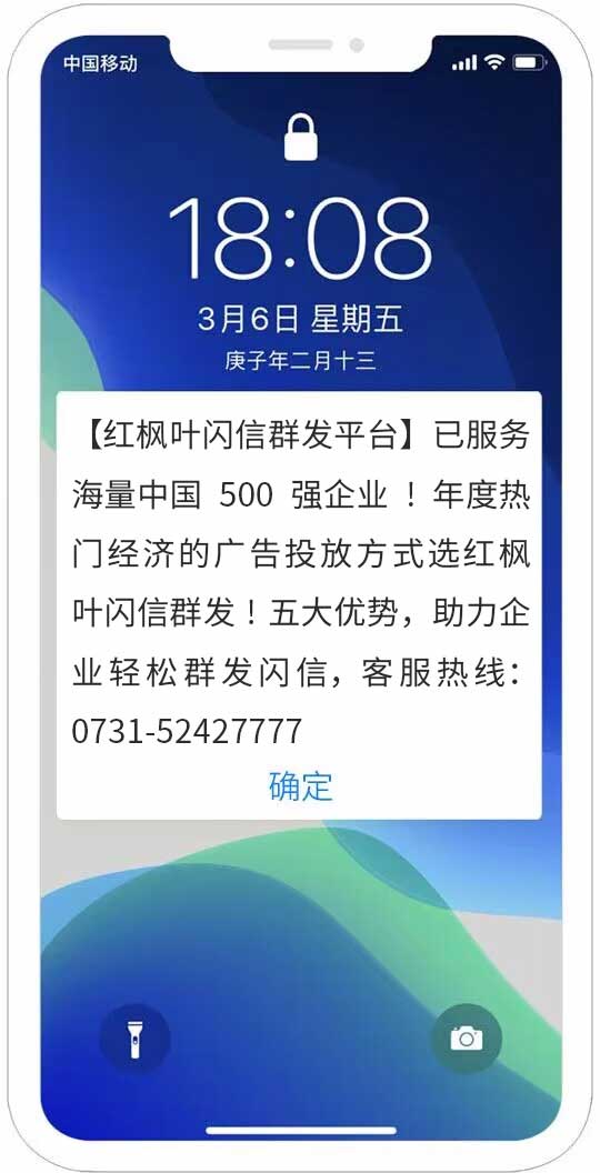 紅楓葉閃信群發(fā)平臺 是指用戶在收到閃信群發(fā)內(nèi)容后,無需打開,短信內(nèi)容直接顯示在用戶手機屏幕上,用戶如果沒有點擊閱讀,則閃信內(nèi)容一直有顯示,用戶必須點擊才能關閉,真正實現(xiàn)了高閱讀率、高到達率!提升了用戶對產(chǎn)品的轉(zhuǎn)化率!